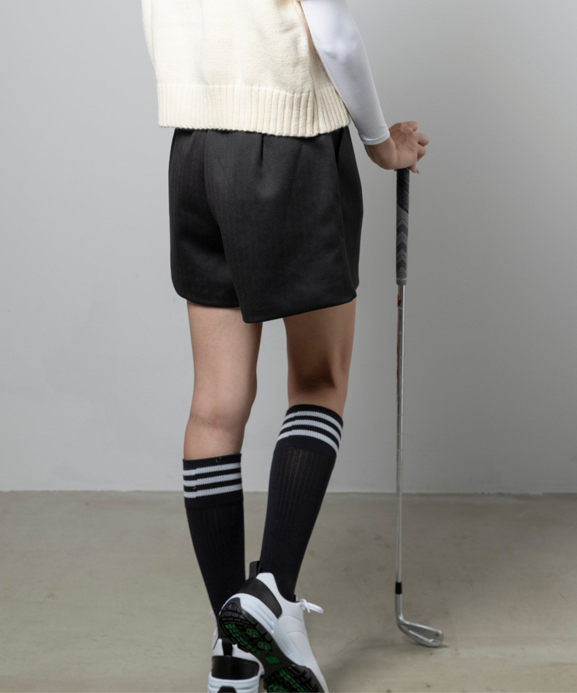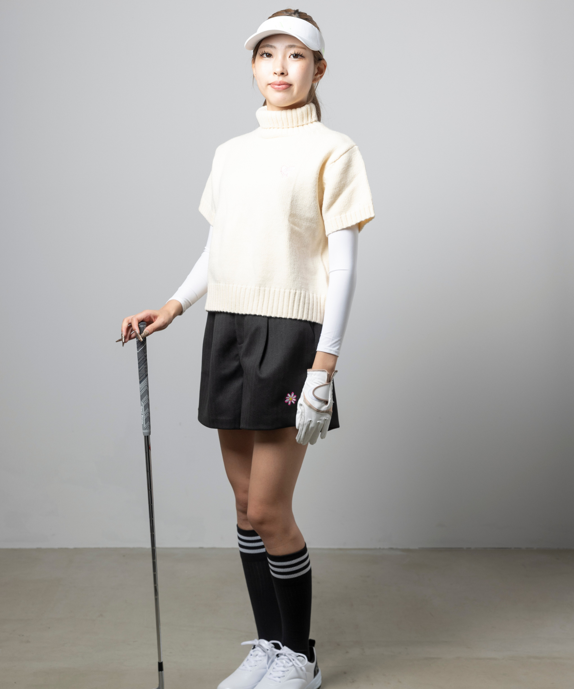 フロントにはフラワー刺繍が施され、シンプルな中に女性らしい華やかさをプラス。デイリー使いはもちろん、ゴルフラウンドや練習シーンでも動きやすくオシャレに楽しめる万能アイテムです。