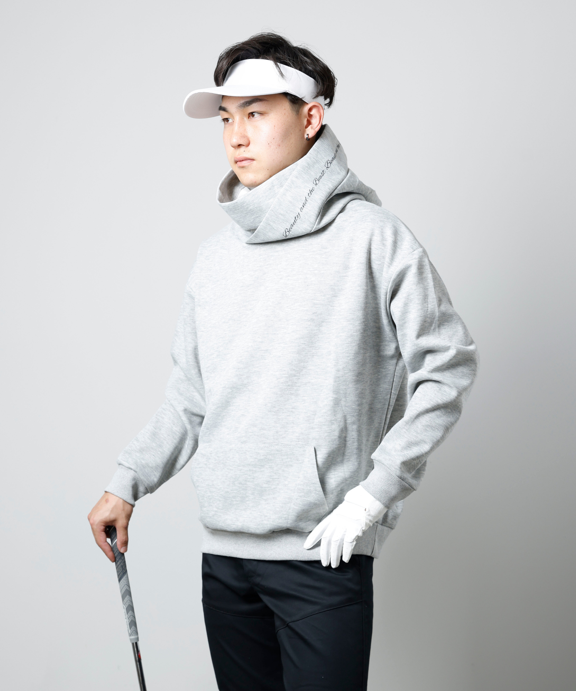 バックにBEAUSTYのドロップハートロゴ、フードには「BEAUTY AND THE BEAST」の文字をあしらったデザインパーカー。二重構造のネックデザインが生み出す立体的なシルエットは、スタイリッシュでありながらリラックス感のある着心地を実現します。