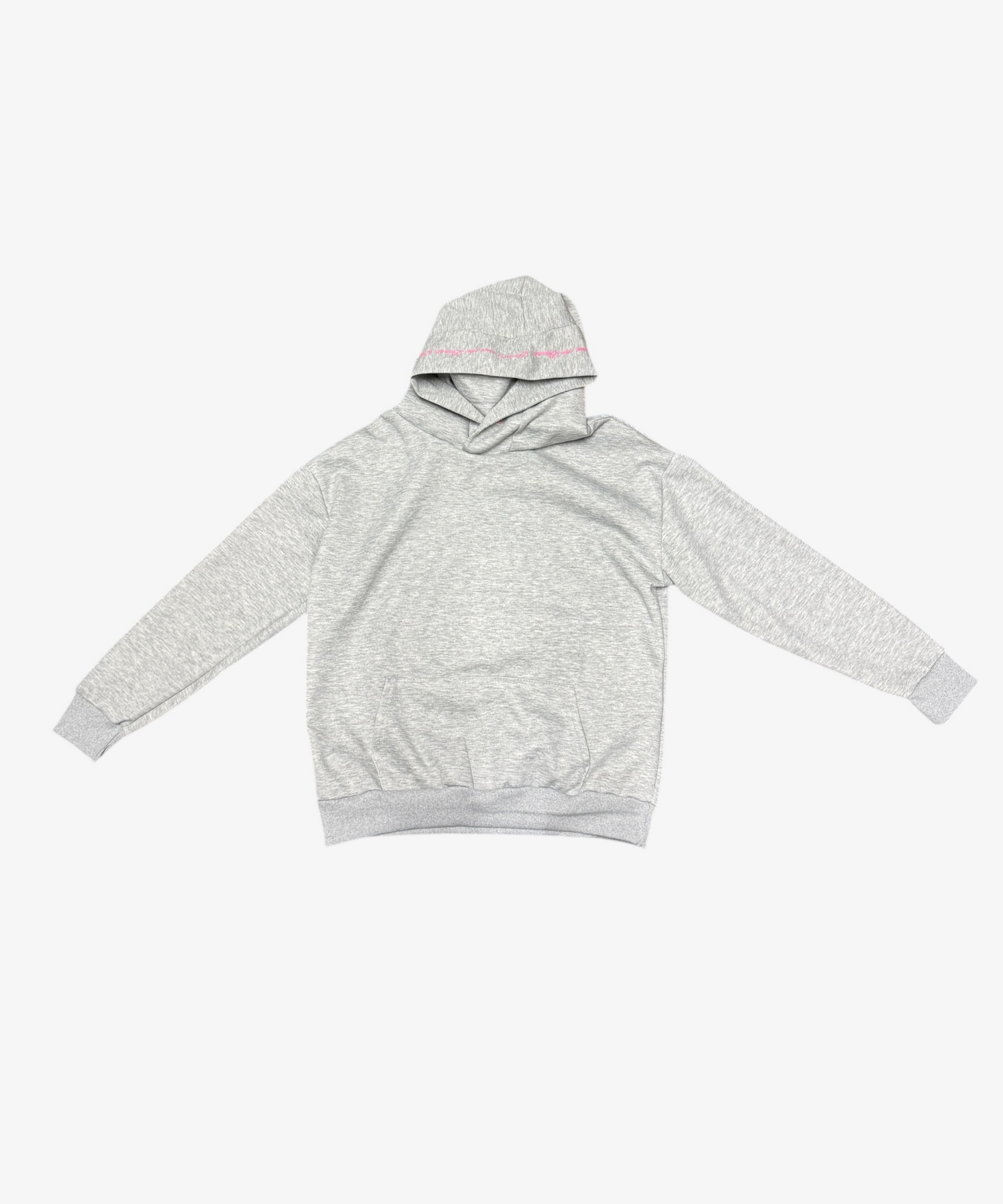 バックにBEAUSTYのドロップハートロゴ、フードには「BEAUTY AND THE BEAST」の文字をあしらったデザインパーカー。二重構造のネックデザインが生み出す立体的なシルエットは、スタイリッシュでありながらリラックス感のある着心地を実現します。