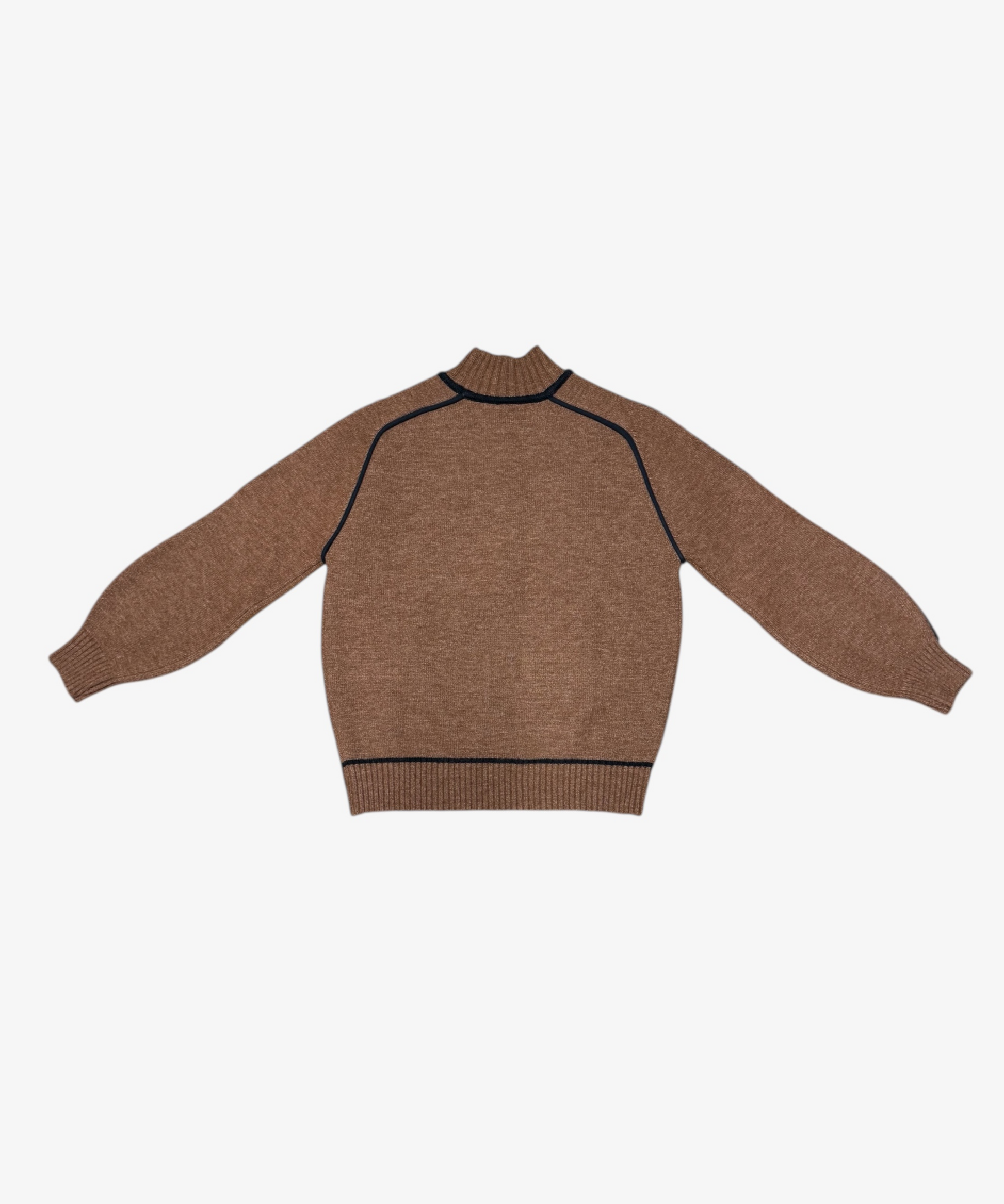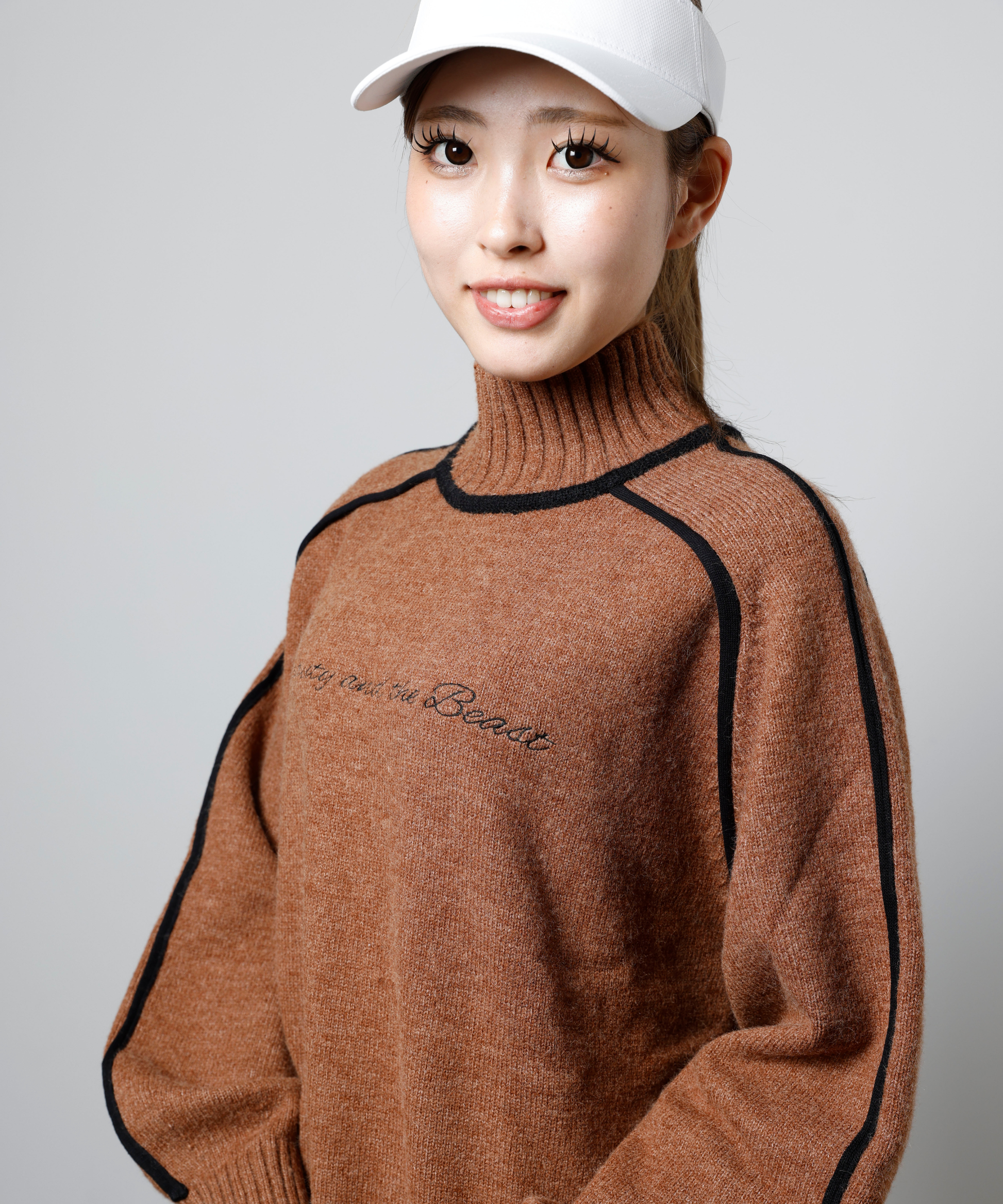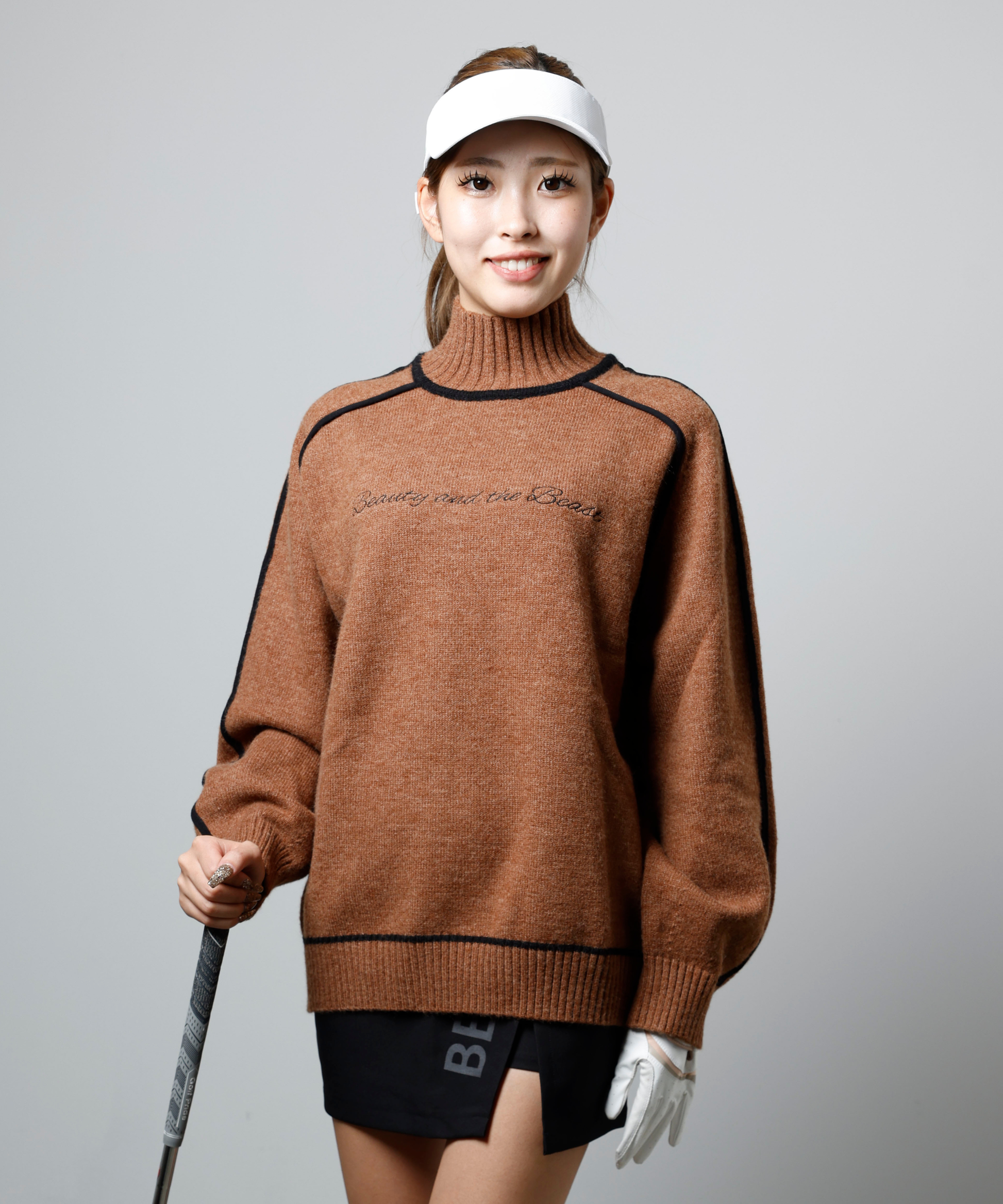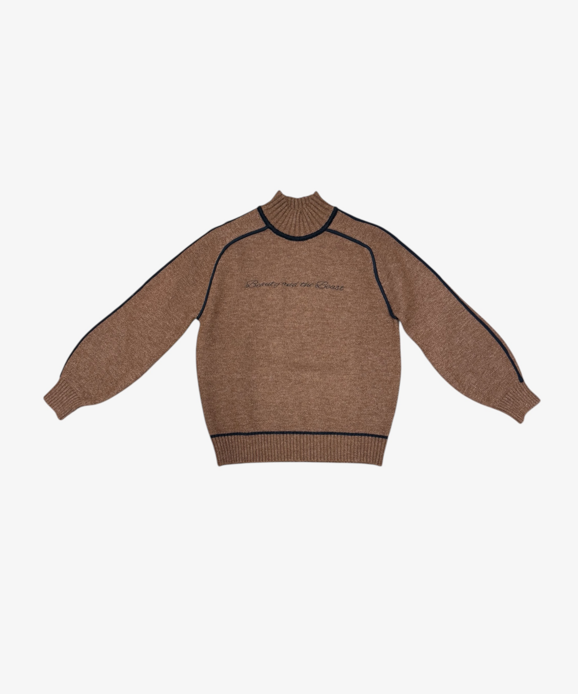 ハイネックニットプルオーバー Beauty and the Beast 刺繍 BROWN