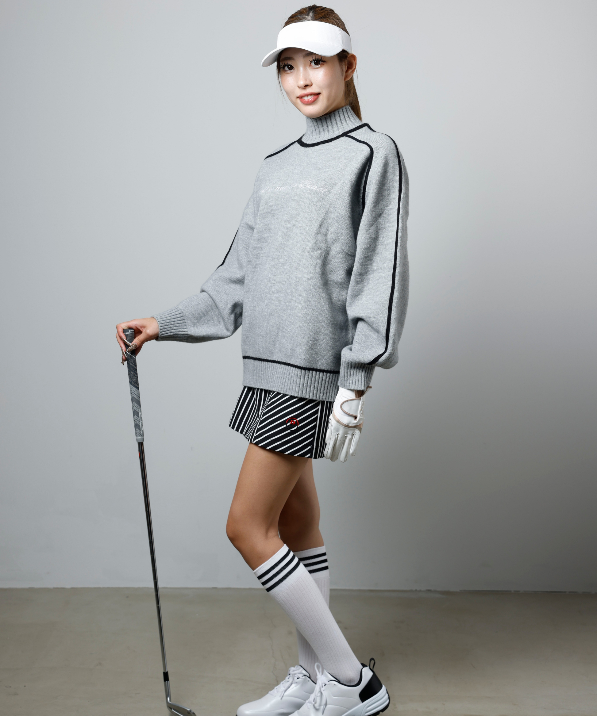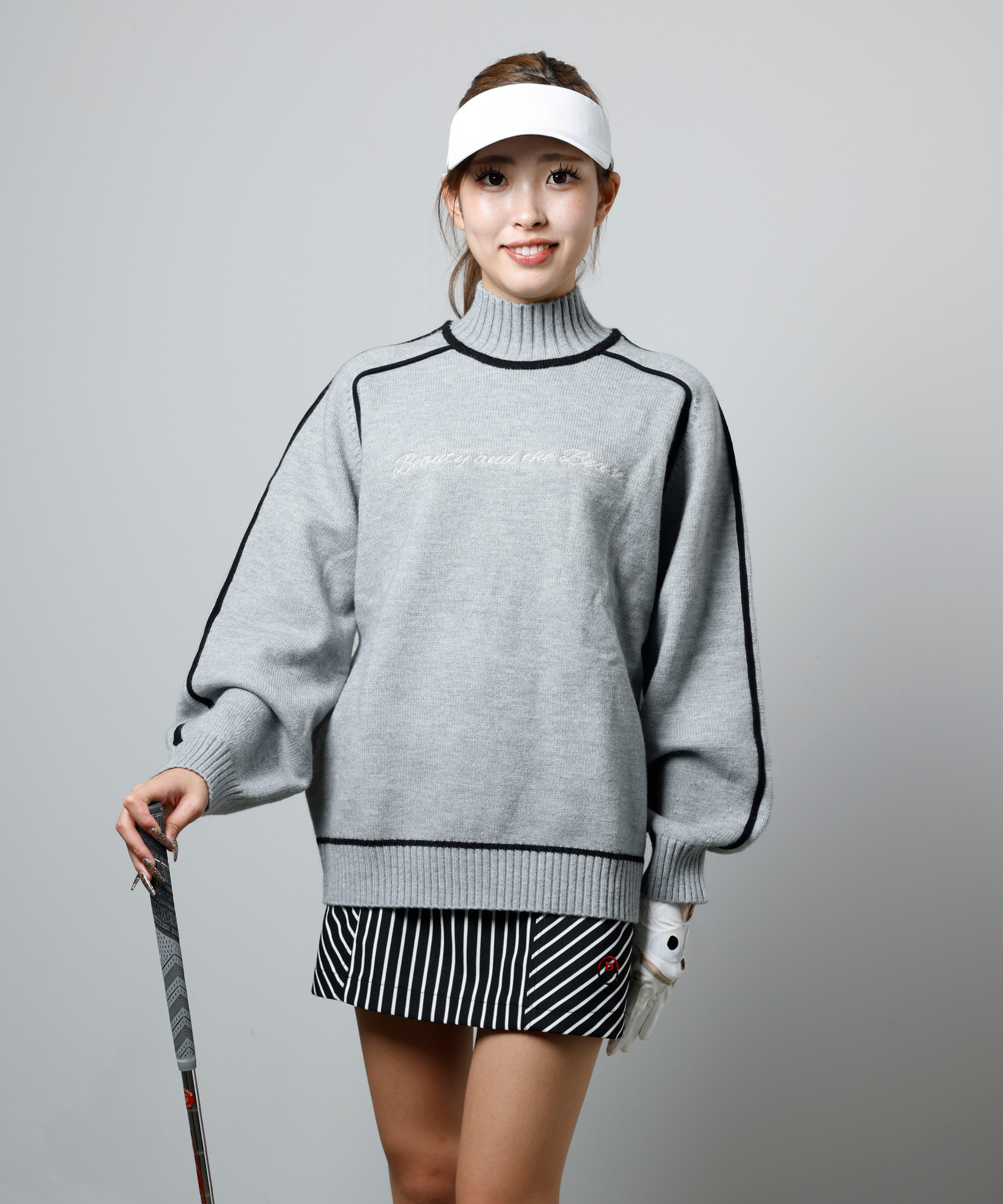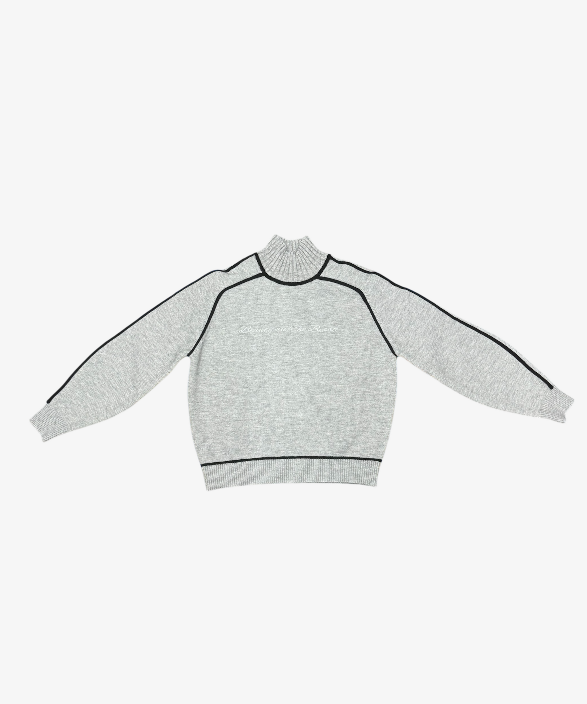 ハイネックニットプルオーバー Beauty and the Beast 刺繍 LIGHTGREY