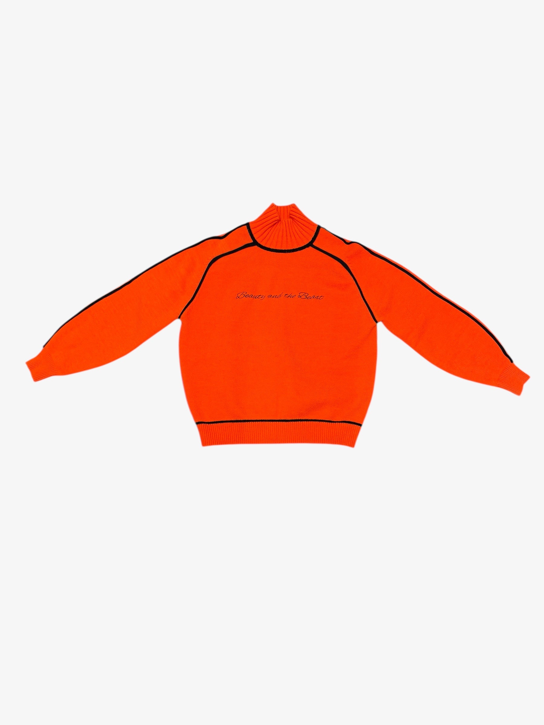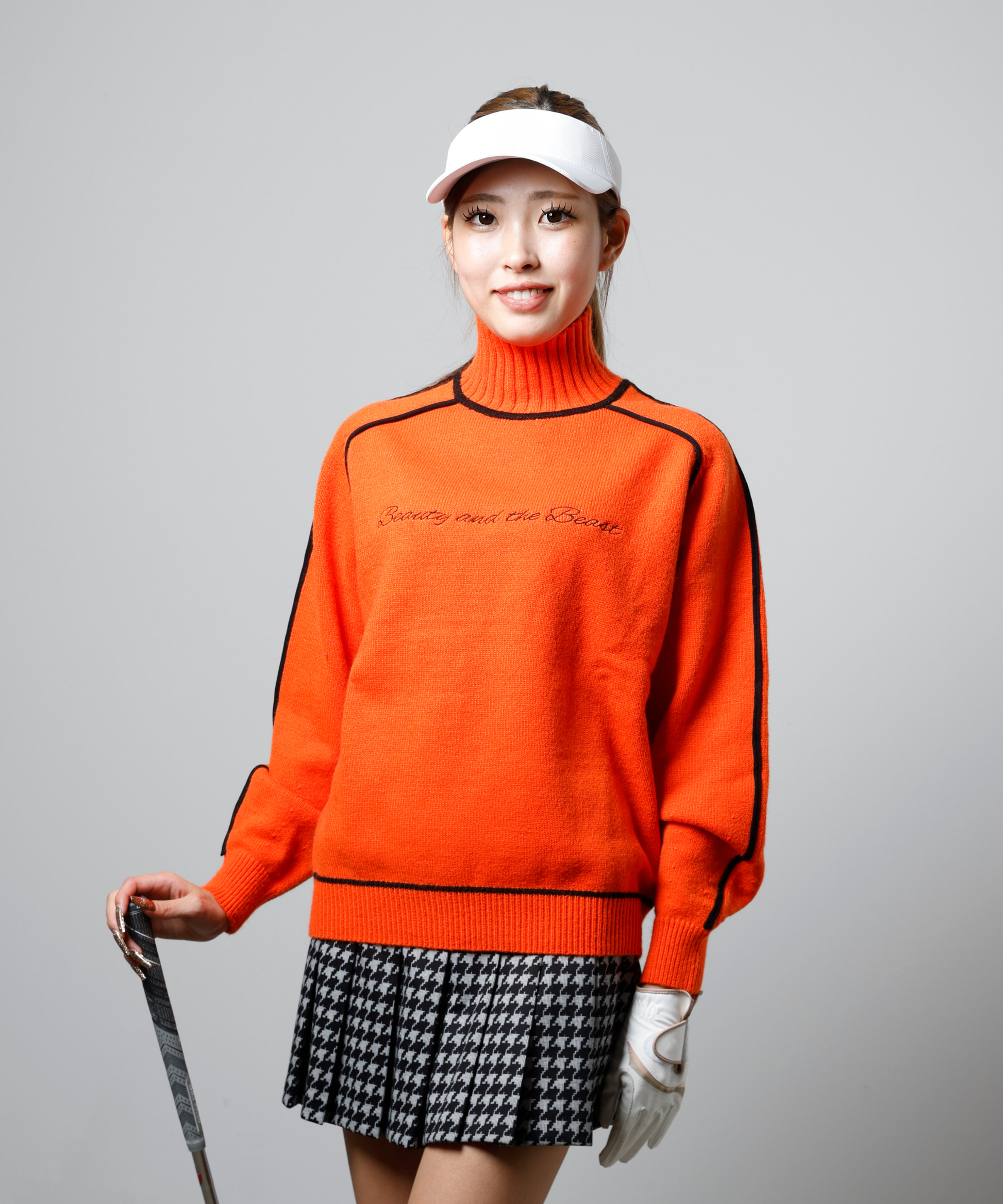 ハイネックニットプルオーバー Beauty and the Beast 刺繍 ORENGE